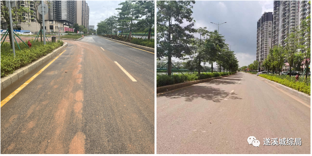 路面清洗前(左)后(右)对比
