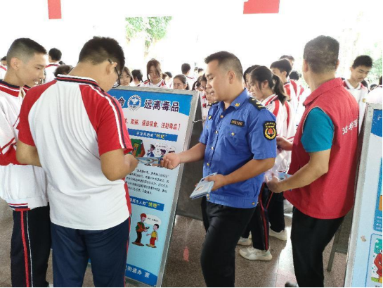 为进一步普及新型毒品替代品“依托咪酯”的相关知识,11月6日上午,遂溪县城综局会同遂城街道办事处、遂溪县禁毒办、遂溪县教育局、遂溪县人民法院在遂溪县黄学增纪念中学开展“防范依托咪酯滥用,构建绿色无毒校园”主题宣传活动。