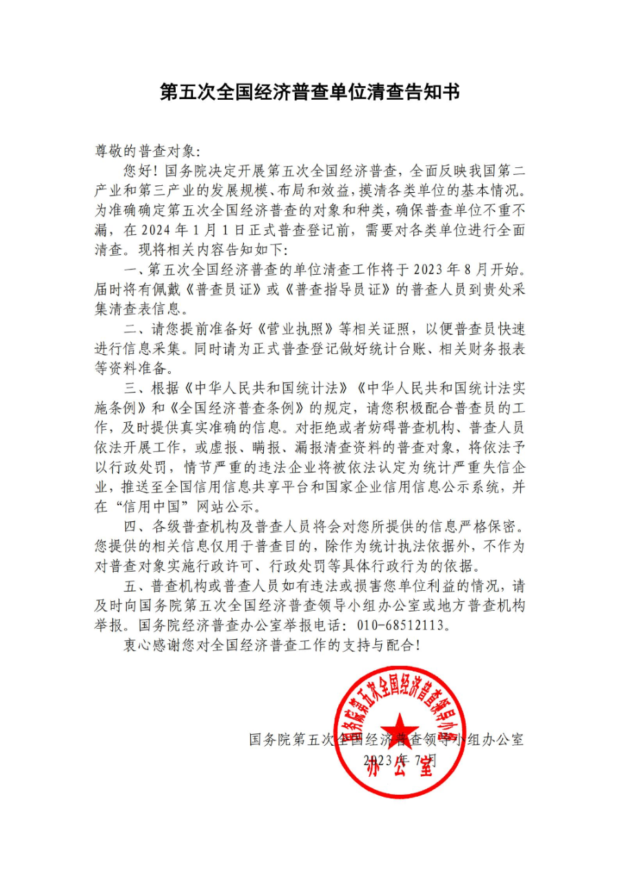 第五次全国经济普查单位清查告知书