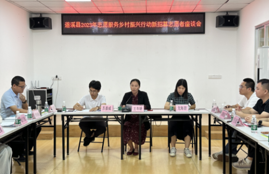 为顺利开展广东高校毕业生志愿服务乡村振兴行动第五批志愿者报到上岗工作,做好志愿者行为规范、安全管理、思想政治教育内容,11月1日上午,团县委在县青少年活动中心组织召开遂溪县2023年志愿服务乡村振兴行动新招募志愿者座谈会。团县委副书记王冬娇、县项目办负责同志,各有关服务单位同志以及第五批新招募志愿者参加座谈会。