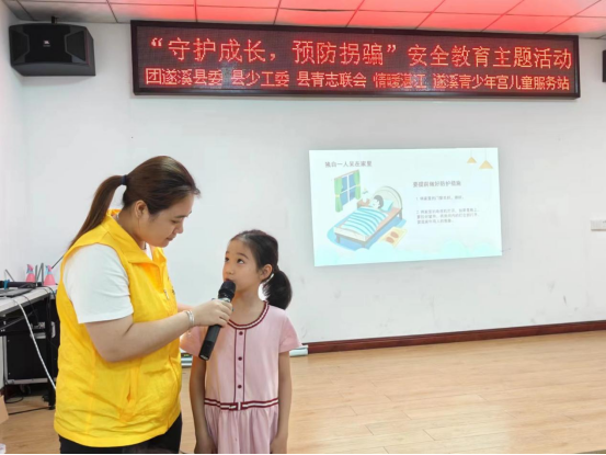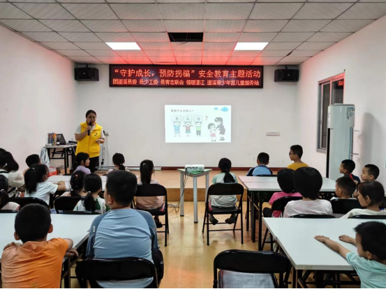 为加强少年儿童防拐骗安全教育,4月14日上午,共青团遂溪县委员会、遂溪县少工委、遂溪县青年志愿服务联合会、湛江市情暖湛江志愿者协会、NO.1111壹基金儿童服务站联合开展“守护成长,预防拐骗”安全教育主题活动。