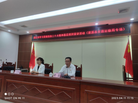 为深入学习贯彻党的二十大精神,4月11日,遂溪县交通运输局在局一楼大会议室召开学习贯彻党的二十大精神宣讲报告会。会议由交通运输局党组书记、局长梁盘主持,局党组成员、机关全体干部职工等50余人参加。