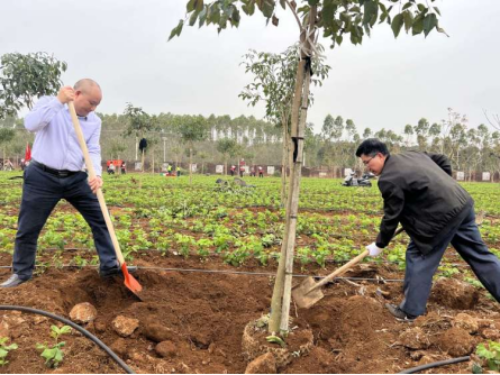 大家手挥铁锹锄头,挖坑栽苗,培土打垅,积极投身到造林绿化、建设美丽遂溪的实际行动中.....