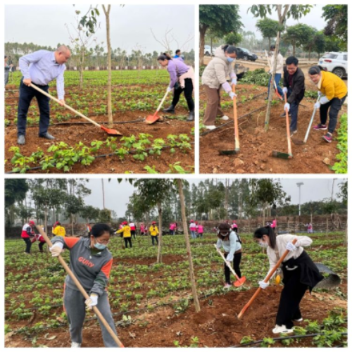 2月28日下午,县教育局局长陈赵成、副局长谢田桂带领局机关30多名女干部职工,到岭北镇田增小学植树,助力“百千万工程”典型镇建设。