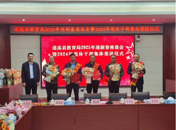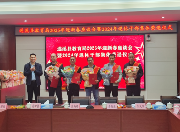 祥龙辞旧,金蛇迎新。1月23日上午,遂溪县教育局召开2025年迎新春座谈会暨2024年退休干部集体荣退仪式。县教育局党组成员和2024年退休干部代表、局机关全体干部欢聚一堂,共庆新春佳节、共叙教育情谊、共商发展大计。