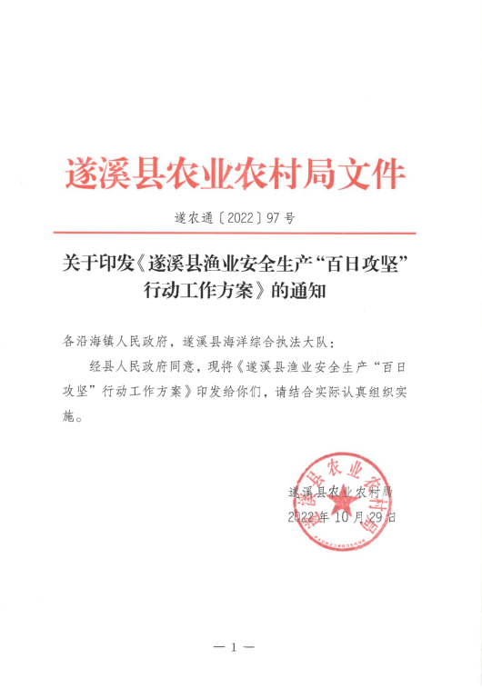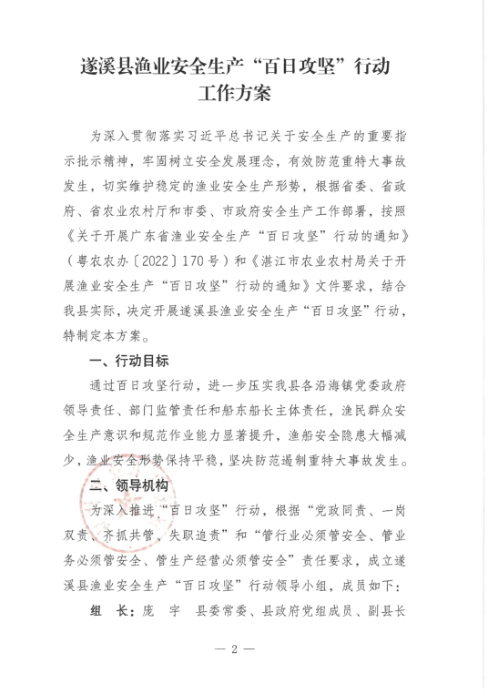 关于印发《遂溪县渔业全生产“百日攻坚”行动工作方案》的通知