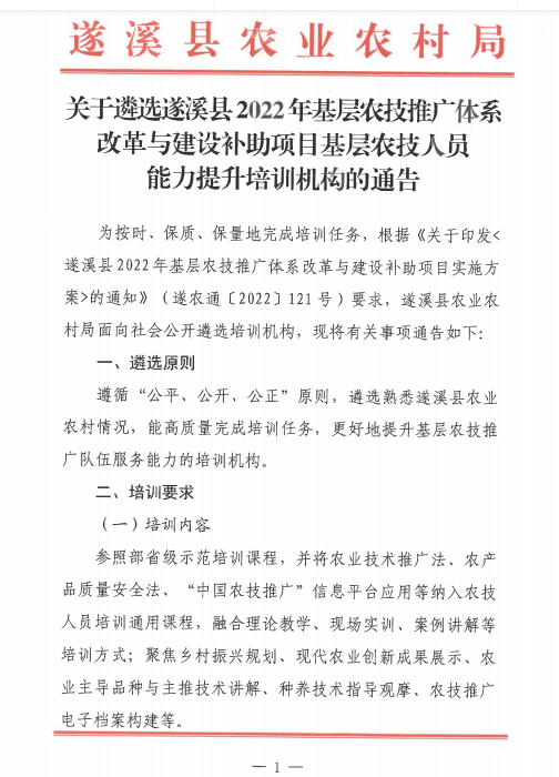 关于遴选遂溪县2022年基层农技推广体系改革与建设补助项目基层农技人员能力提升培训机构的通告