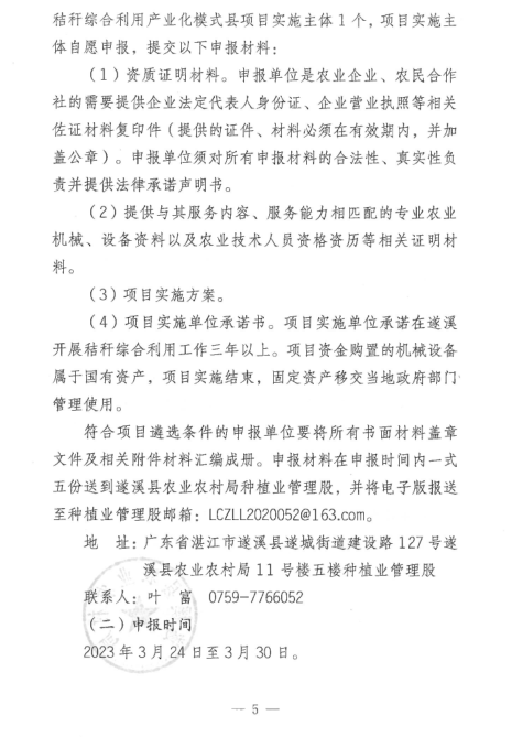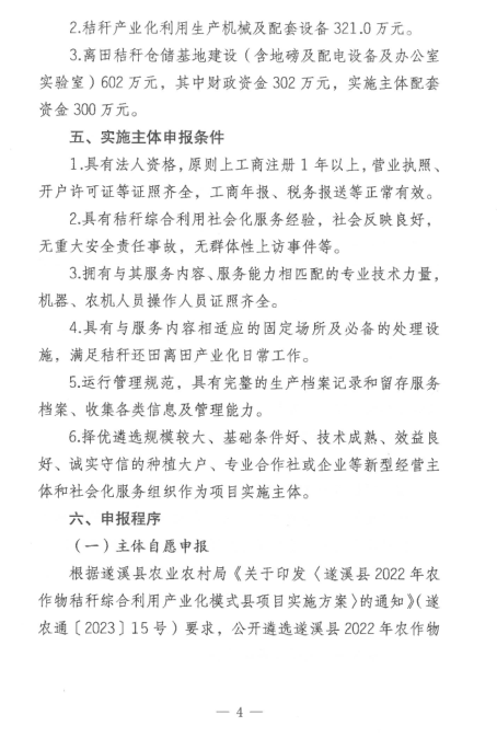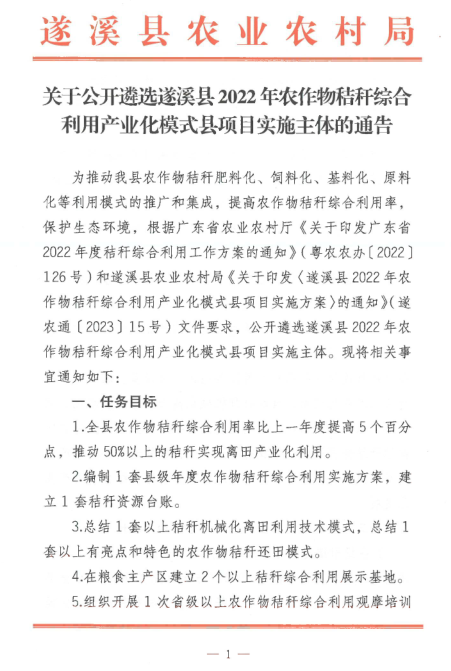 关于公开遴选遂溪县2022年农作物秸秆综合利用产业化模式县项目实施主体的通告