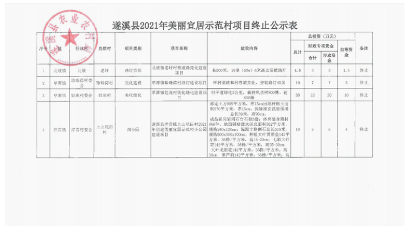 关于终止遂溪县2021年美丽宜居示范村项目公示