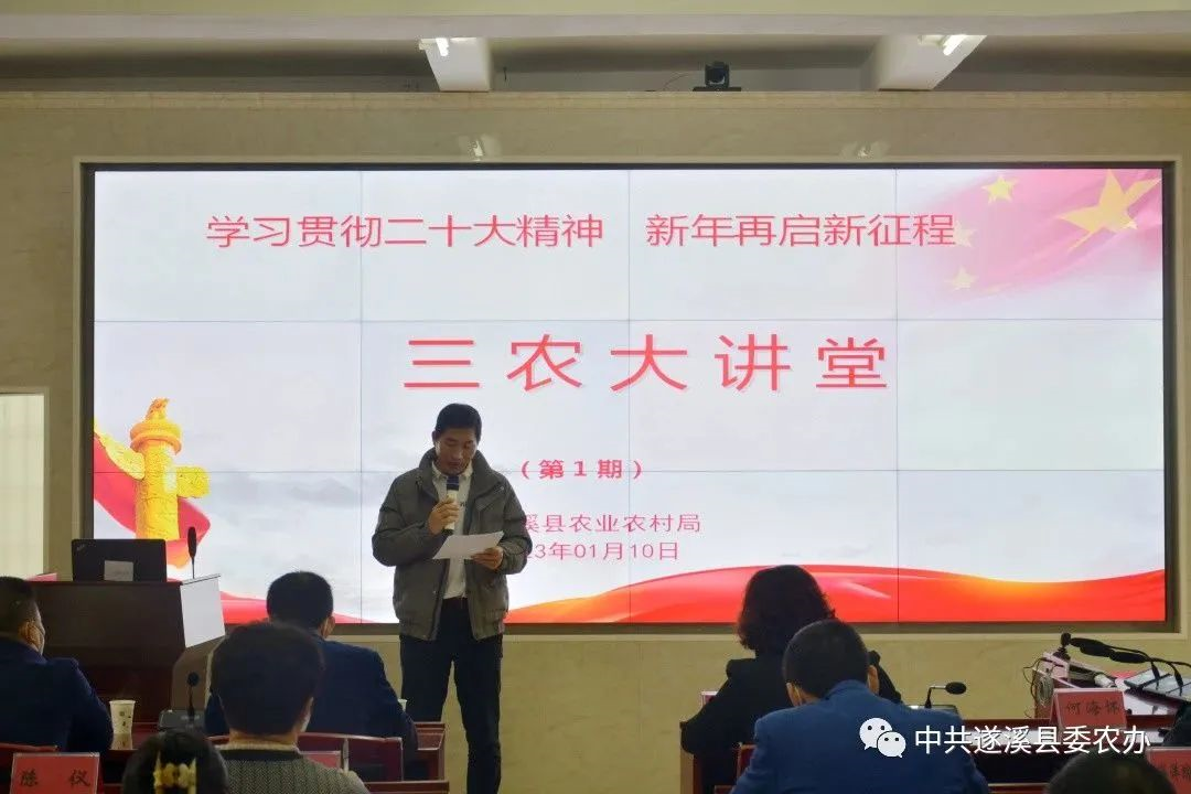 1月10号下午,遂溪县农业农村局“三农大讲堂”在局10号楼三楼会议室迎来2023年“新年第一讲”。局办公室黄丽珍和计划财务股尤得同志分别就“规范公文办理流程”和“涉农资金使用注意事项”两个授课主题进行讲解。县委农办专职副主任、县农业农村局党组成员、县乡村振兴局副局长尤志勤主持讲座活动。