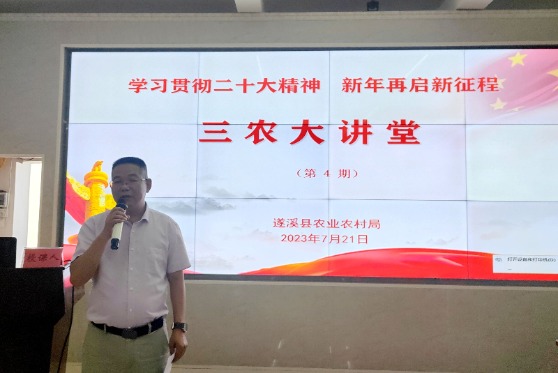为进一步营造“比学赶超”的新风气和新状态,推促各股室(单位)不断学习先进经验、明确工作重点、提升业务水平,推动工作落实,7月21日下午,遂溪县农业农村局2023年第四期“三农大讲堂”如期在局10号楼3楼会议室开讲。县农业农村局副科级以上领导、各股室负责人和业务人员、各直属事业单位负责人共60人参与活动。