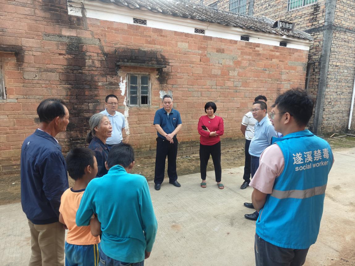 为了解吸毒人员生活现状和心理健康状况,使戒毒人员充分感受到政府和社会的关怀,11月5日下午,湛江市生态环境局遂溪分局党组书记、局长岑国强带队联合乌塘镇政府到乌塘镇六口塘村、乌塘圩村、油河村等几个村委会开展入户慰问探访涉毒困难家庭活动。