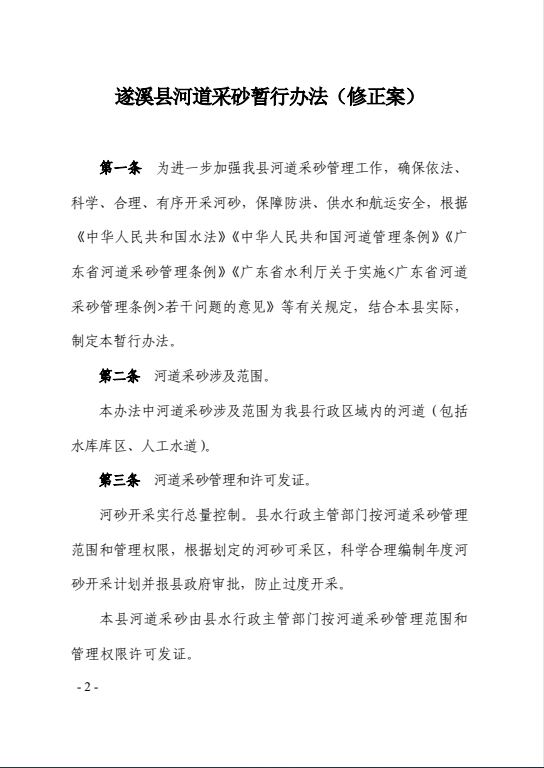 关于印发遂溪县河道采砂暂行办法(修正案)的通知