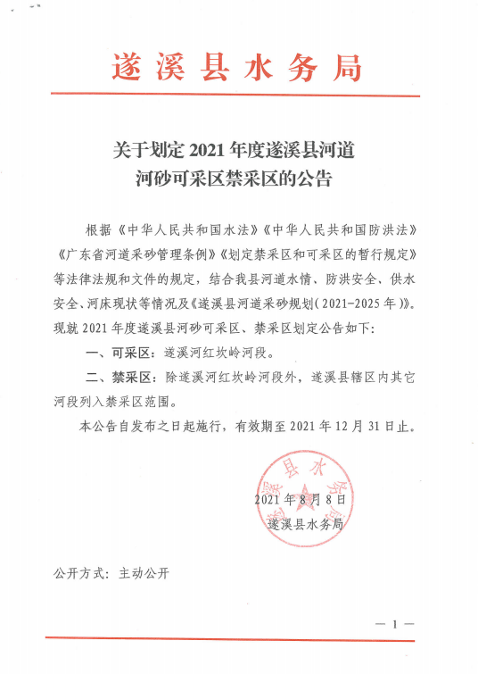 关于划定2021年度遂溪县河道河砂可采区禁采区的公告