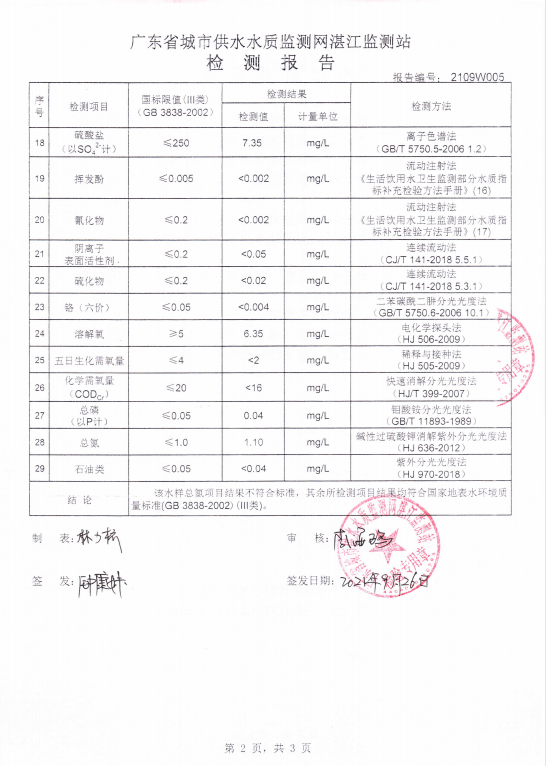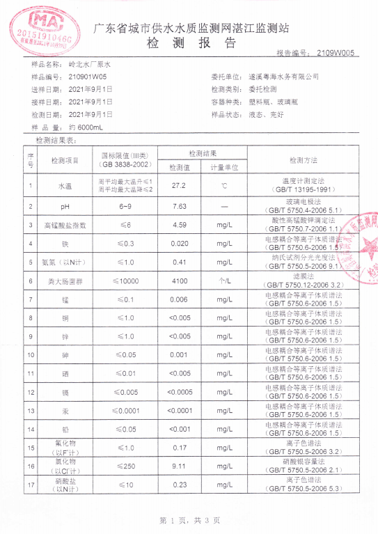 岭北源水检测报告