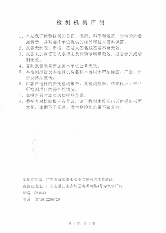 运河出厂水检测报告