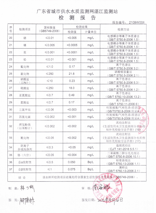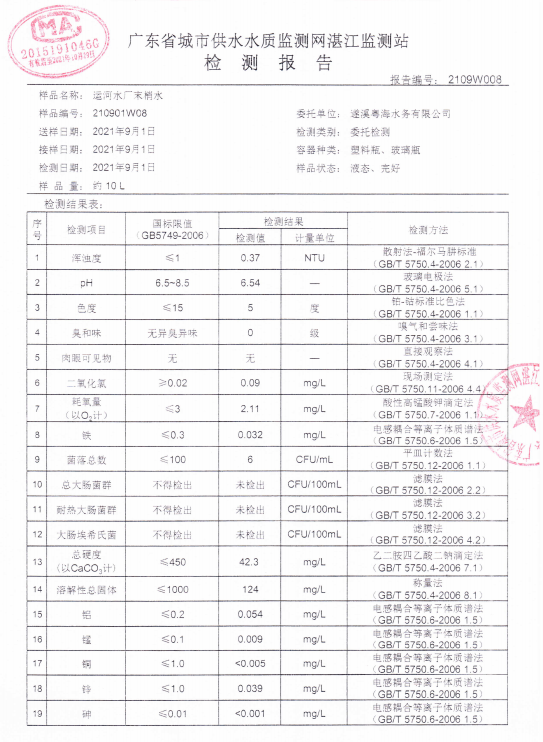 运河末梢水检测报告