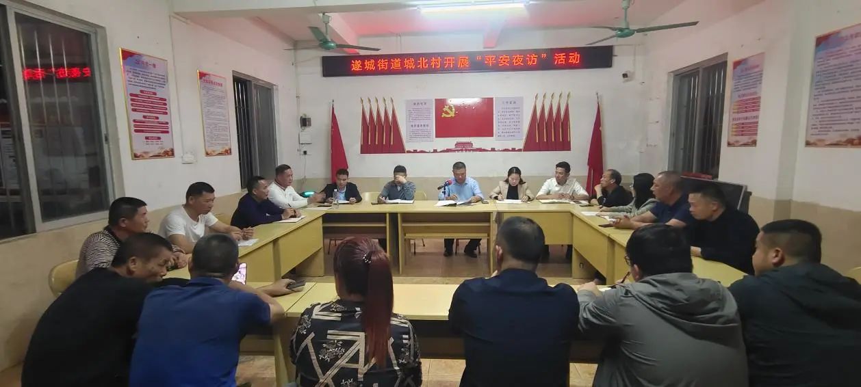 3月5日晚上,遂溪县人大常委会副主任揭盛率队到遂城街道城北村委会开展“平安夜访”活动,深入了解社情民意,“零距离”联系服务群众。县交通运输局、县住房和城乡建设局、县城市管理和综合执法局、县水务局、遂城街道办事处等相关单位分管领导参加夜访活动。
