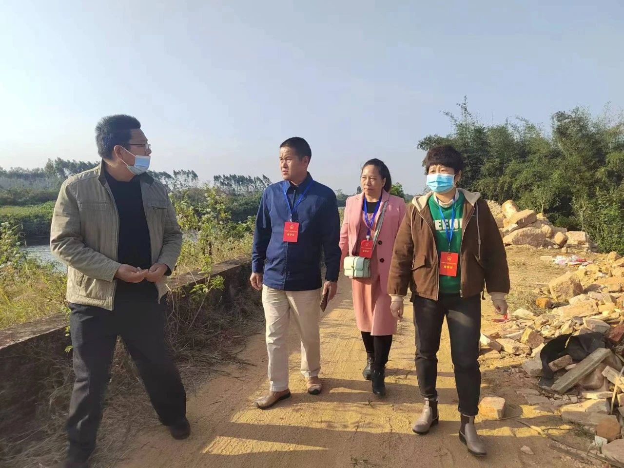 视察组一行来到豆坡桥边的损坏水闸进行查看,现场听取豆坡村干部说明水闸修建的意义和作用,实地详细了解水闸修建的前期筹备、资金来源、工程难度、技术应用、影响范围、管维机制、开工建设等情况。据悉,该水闸因受河水冲击且年久失修,早已损坏多时,每逢汛期到来,暴涨河水倒灌入田埂地头,导致豆坡圩、黎头插村、东村、山仔村等自然村200多亩农田受损,影响了农民种粮的积极性和主动性,所以修建豆坡水闸是群众多年的呼声。代表们现场对修建豆坡水闸工程积极建言献策,提出有效意见建议。