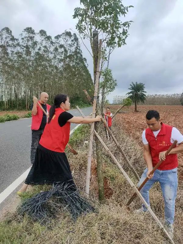 活动现场,人大代表充分发挥带头示范作用,代表们深入到植区实地查看今年以来新种下的树木成长情况,对高明村主干道沿线路边新种植树苗进行巡查,仔细观察病虫害情况。代表们手持工具,分工合作,积极配合,根据存活苗实际生长情况仔细清理杂草及杂物和扶正加固支撑护桩,确保前期绿化栽种树苗落地生根、茁长生长,推动绿美广东生态建设。
