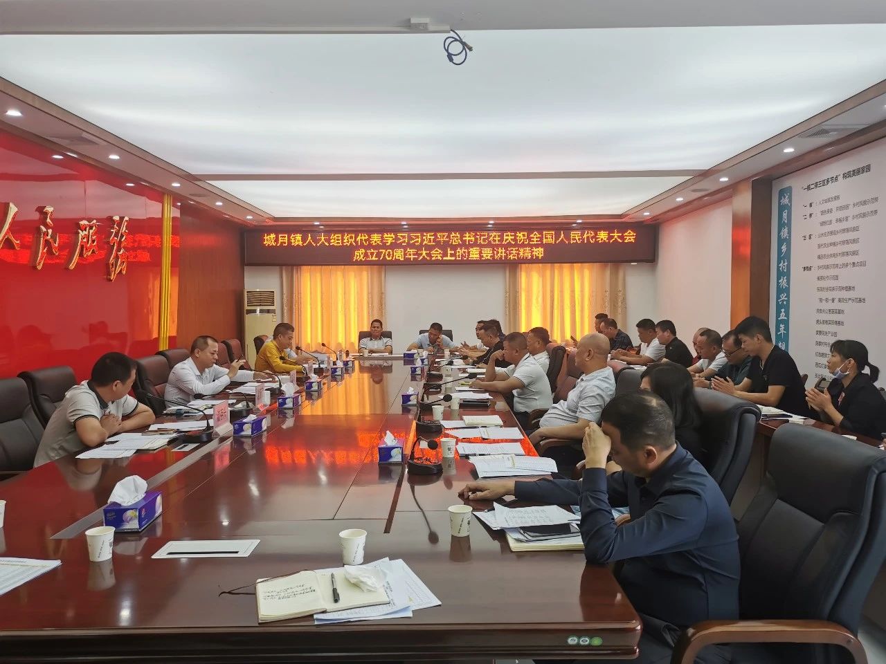 10月31日,城月镇人大主席团组织代表学习习近平总书记在庆祝全国人民代表大会成立70周年大会上的重要讲话精神和全国人大常委会关于学习贯彻习近平总书记关于坚持和完善人民代表大会制度的重要思想座谈会精神,研究贯彻落实意见。部分县镇人大代表参加。