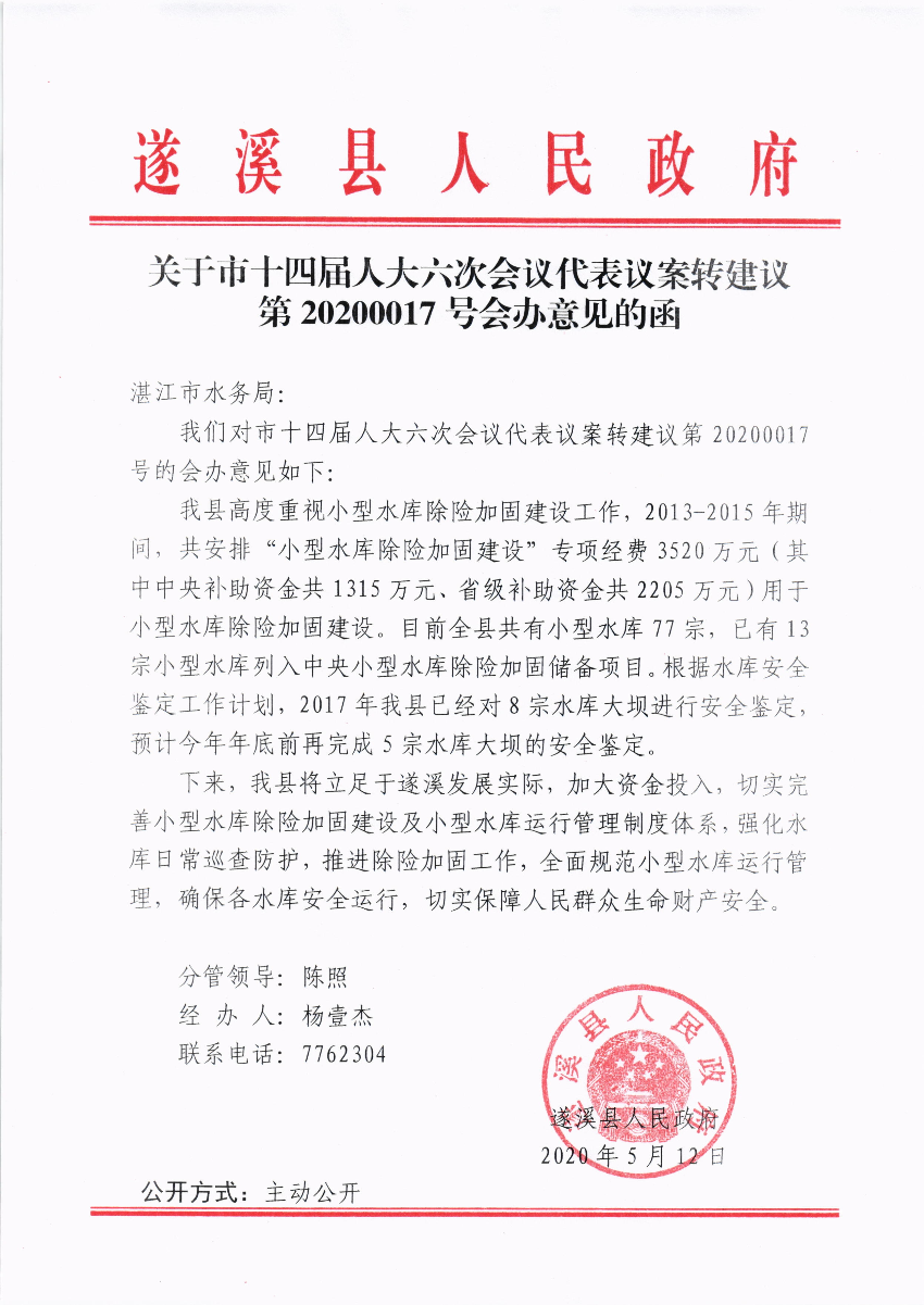 关于市十四届人大六次会议代表议案转建议第20200017号会办意见的函