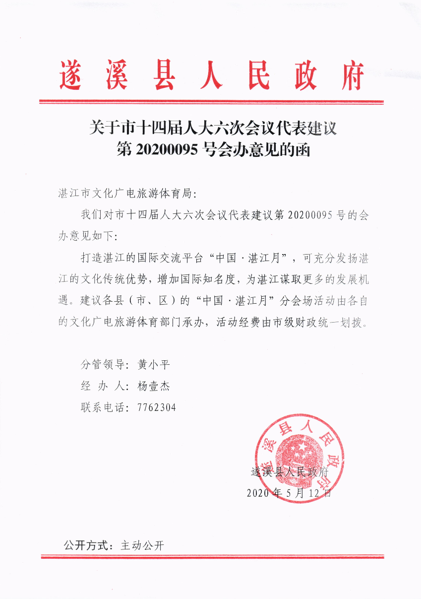 关于市十四届人大六次会议代表建议第20200095号会办意见的函