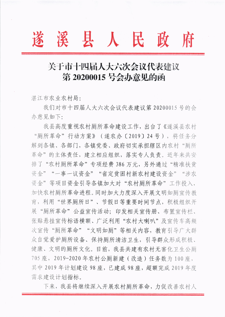 关于市十四届人大六次会议代表建议第20200015号会办意见的函