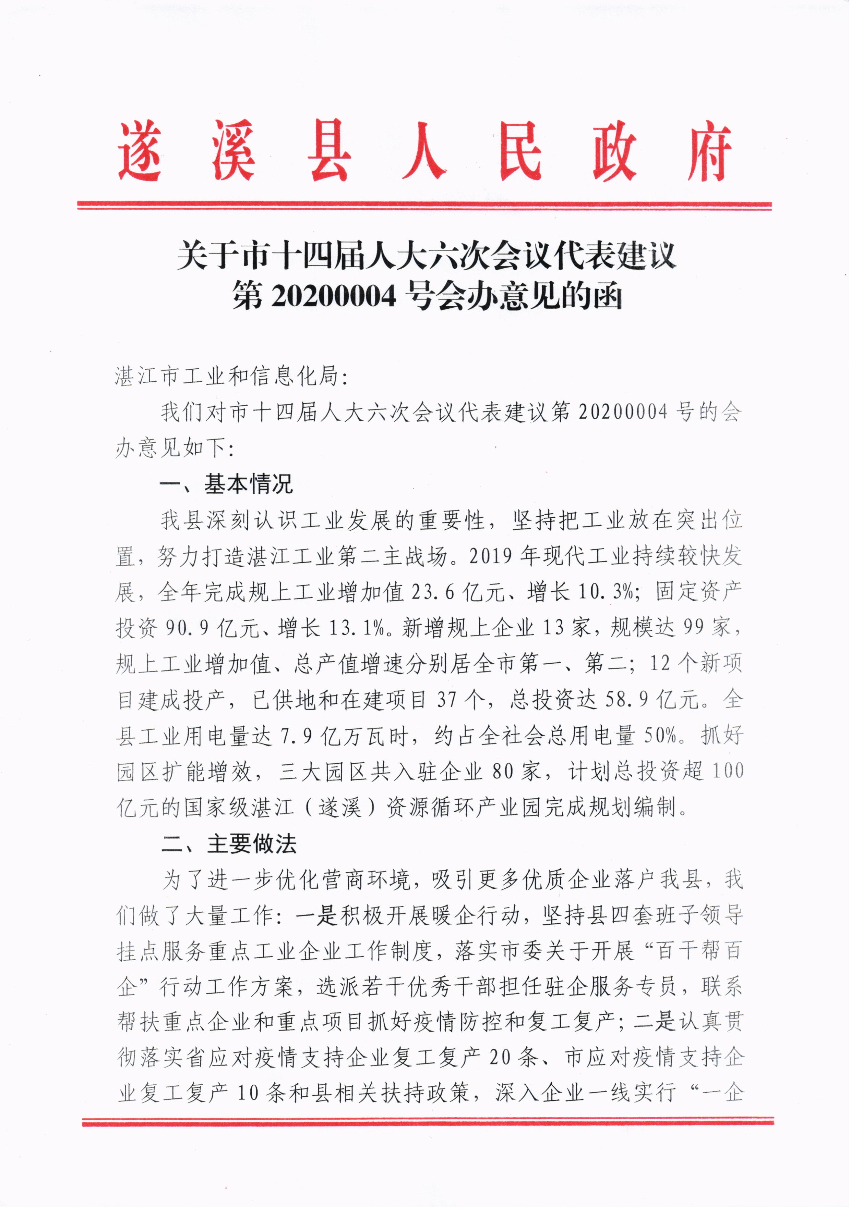 关于市十四届人大六次会议代表建议第20200004号会办意见的函