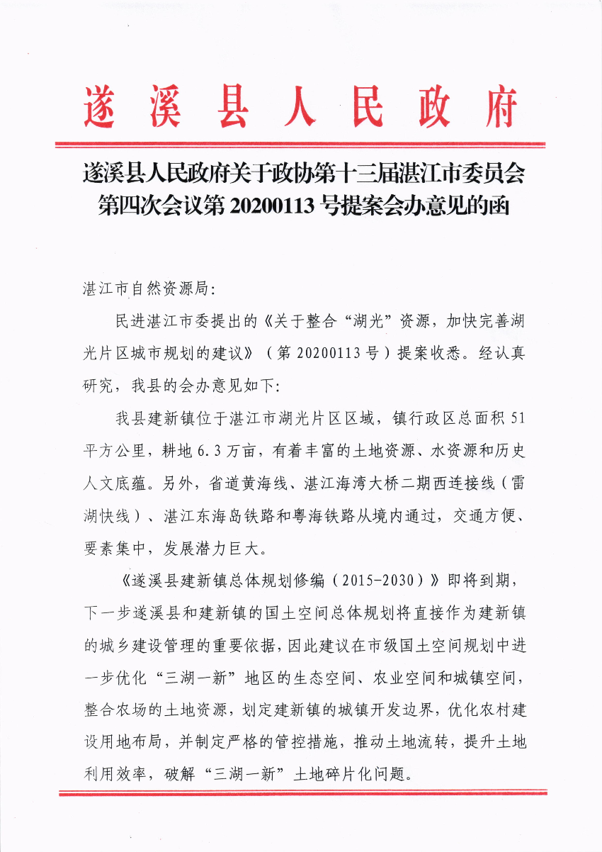 遂溪县人民政府关于政协第十三届湛江市委员会第四次会议第20200113号提案会办意见的函