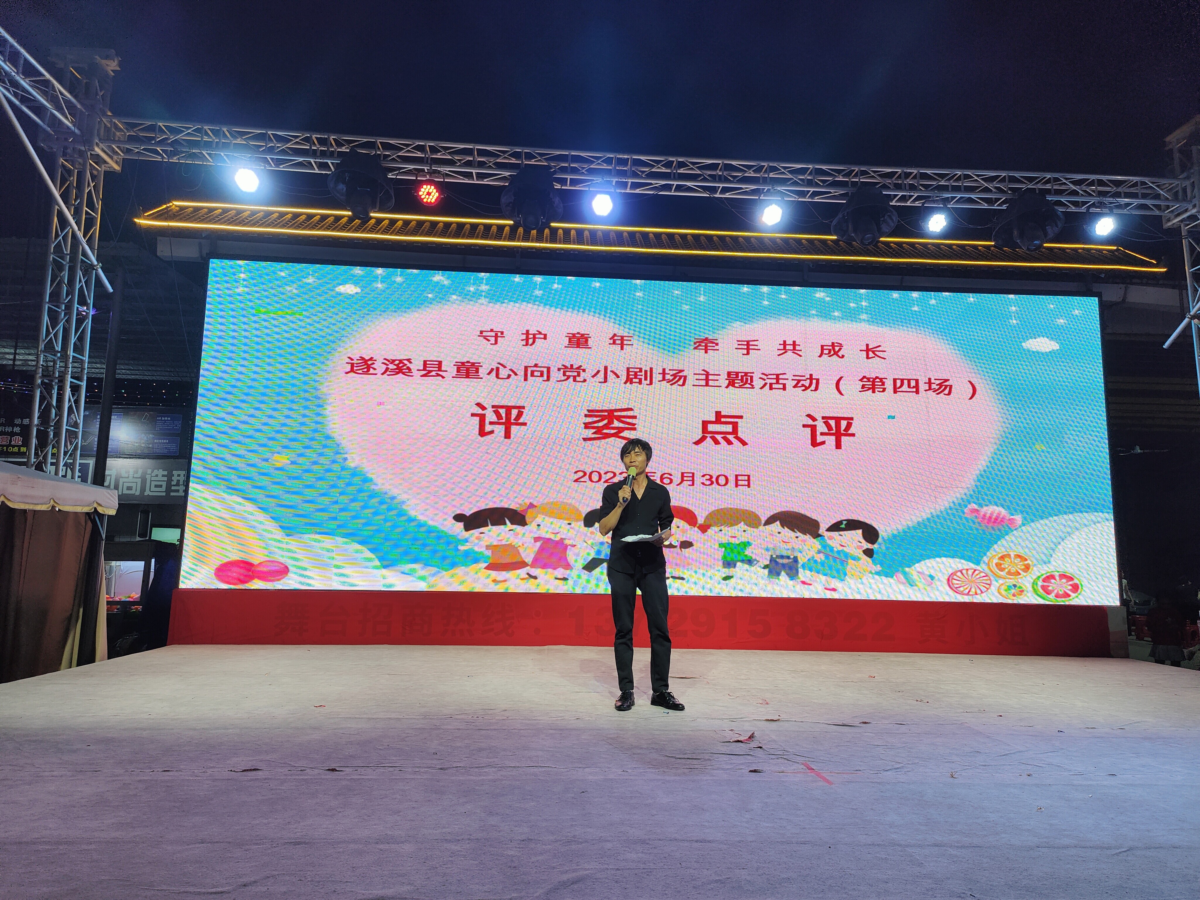 伴随着绵绵细雨、欢快的音乐、精彩的演出欢声笑语......2023630日晚上,为庆祝中国共产党成立102周年,弘扬革命传统,传承党的红色基因,教育引导广大少年儿童听党话、感党恩、跟党走,争做新时代好少年,遂溪县童心向党小剧场第场活动在遂溪县醒狮美食广场内开演