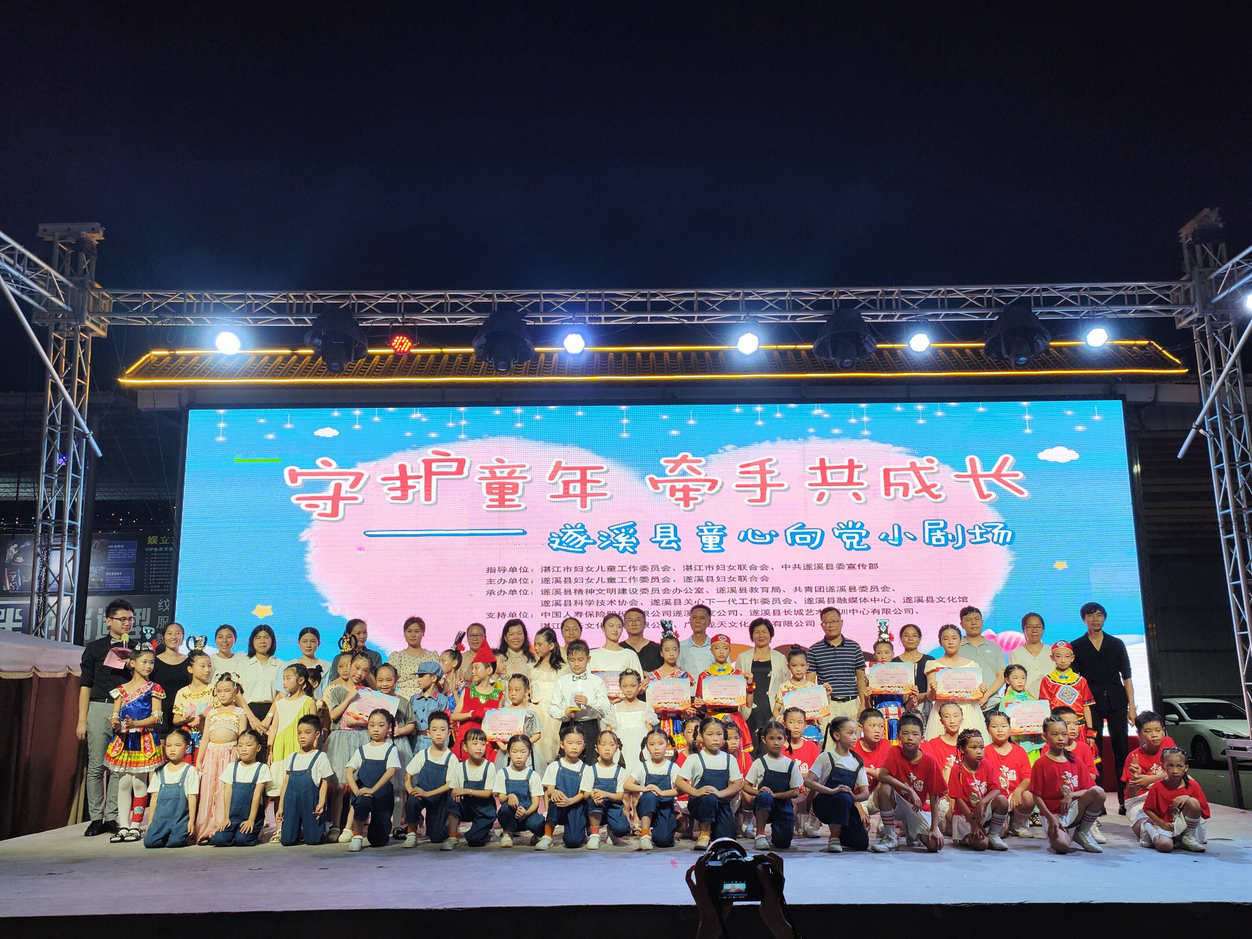 遂溪县童心向党小剧场由遂溪县妇女儿童工作委员会、县妇联联合主办,县文明办、县教育局、团县委、县科协、县关工委、县融媒体中心、县文化馆联合承办,中国人寿遂溪县支公司、遂溪县长城艺术培训中心有限公司、湛江于乐文化传媒有限公司、广东龙天文化传媒有限公司也对该活动给予了大力支持。
