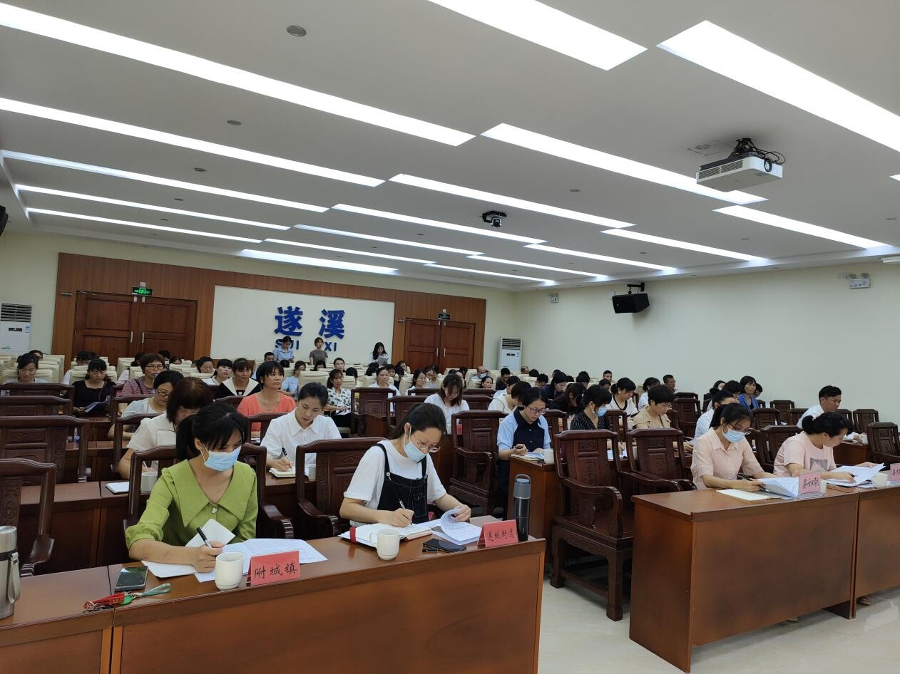 为深入贯彻党的二十大精神和习近平总书记视察广东重要讲话、重要指示精神,充分发挥基层妇联组织及广大妇女在基层党建、人居环境整治、乡村振兴、基层治理等工作及在家庭文明建设、乡风引领中的独特作用,激发基层治理新活力,为我县大力实施“1+3+6”行动计划、乡村振兴战略、“百县千镇万村高质量发展工程”、“头雁工程”、基层党建三年行动计划,实现跨越式高质量发展凝聚起磅礴力量2023724遂溪县妇联、文明办、县农业农村局在县委第一会议室召开遂溪县实施“美丽乡村巾帼项目”三年行动计划动员部署会议。县委副书记沈东宇,县妇联、县文明办、县农业农村局主要领导、分管领导和有关股室负责人,各镇(街)妇联主席、专职副主席,农业办负责人,各镇(街)部分村级妇联主席,部分巾帼志愿者代表等80余人参会。农业农村局党组书记、局长陈连虹主持会议。