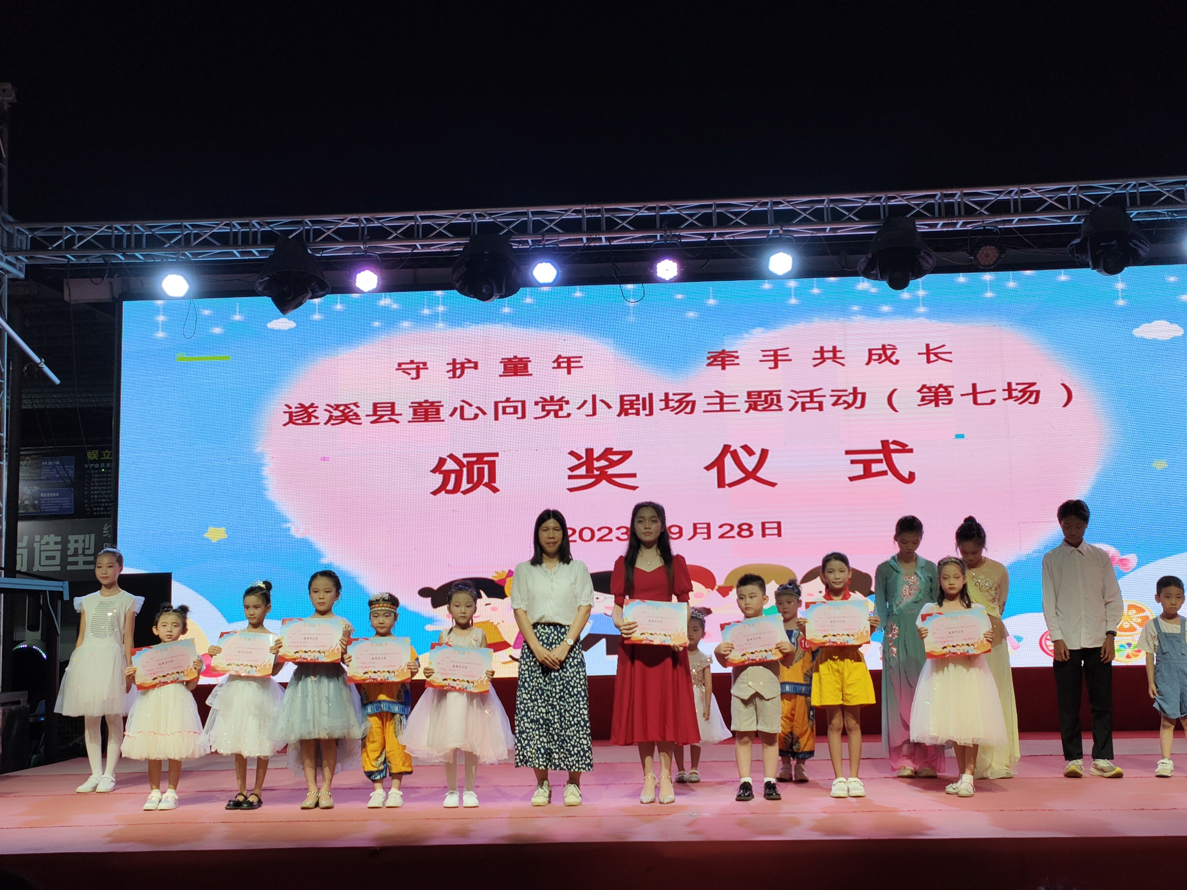 在中秋节和国庆节即将来临之际,2023928日晚,遂溪县童心向党小剧场第七场活动在遂溪县醒狮美食广场内举行,让全县人民在节庆中感受红色文化魅力,进一步深化未成年人思想道德建设工作,引领广大少年儿童听党话感党恩跟党走,助力广东省儿童友好示范县创建工作