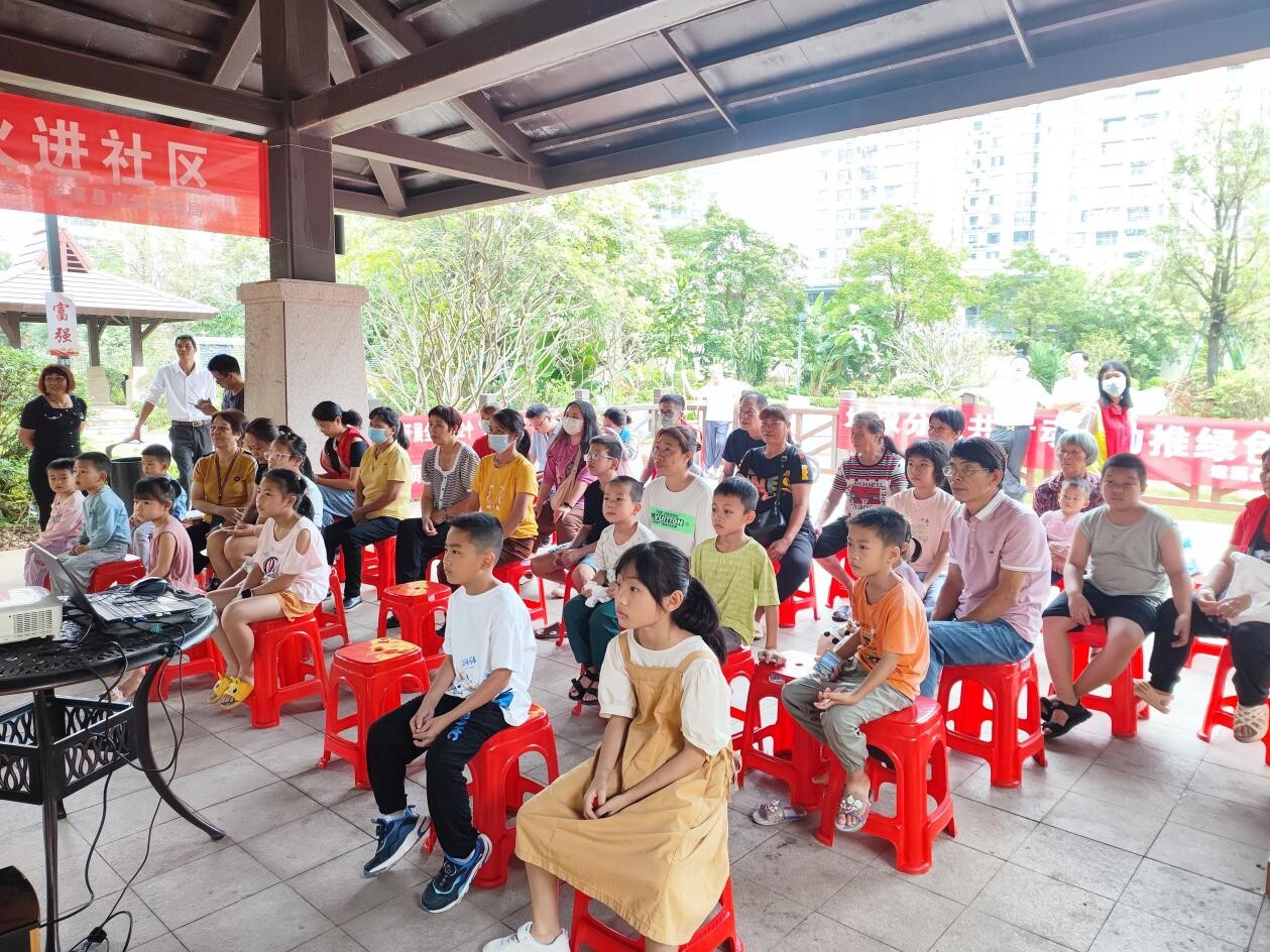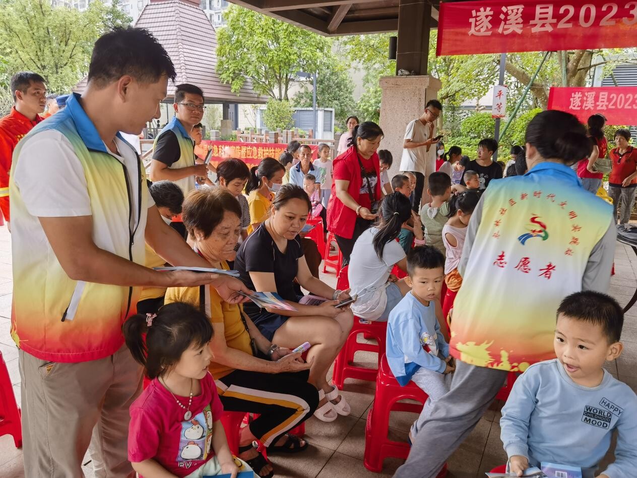 活动设置了有奖问答环节,小朋友们积极参与,现场气氛热烈。在活动期间,志愿者们为大家发放了垃圾分类小知识、气象安全知识、男女平等基本国策、《反家庭暴力法》和《未成年人保护法》等宣传手册200多份,进一步向广大家庭和儿童普及了生态保护、法律、安全等方面知识。遂城街道农林社区大党委共建单位十多名党员志愿者也到活动现场参与科普宣传活动。