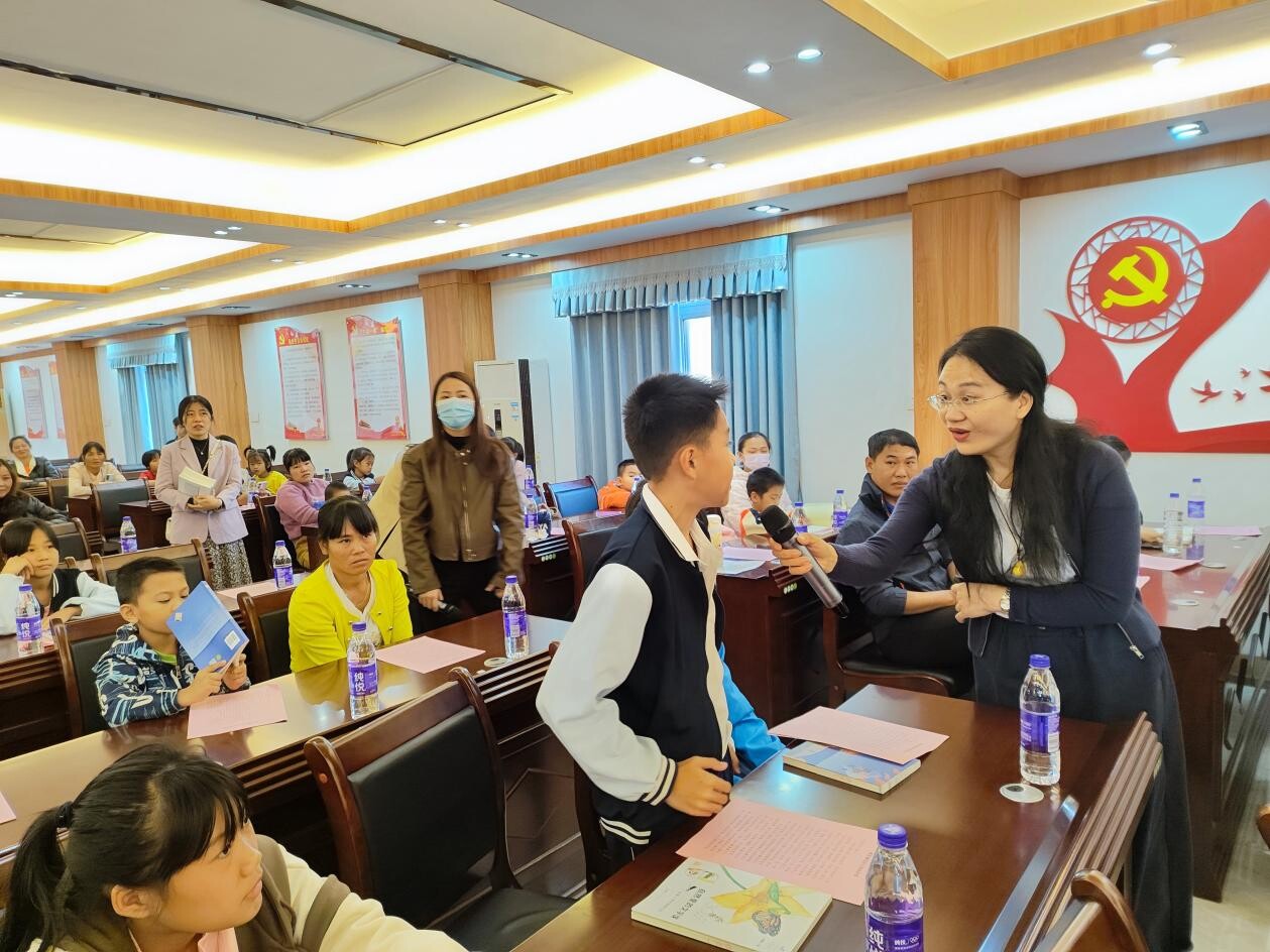 为深入学习贯彻党的二十大精神,贯彻落实习近平总书记关于注重家庭家教家风建设重要论述和推动全民阅读系列重要指示精神,加强遂溪县“守护童年 牵手共成长”未成年人思想道德品牌建设,助力广东省儿童友好示范县创建工作,认真落实立德树人根本任务,做好儿童成长的引路人、守护人、筑梦人。20231118日上午,遂溪县第四期“牵手共成长 书香悦人生”读书分享会活动在遂溪县岭北镇文化楼三楼会议室举办,70多名家长和小朋友参加了活动。