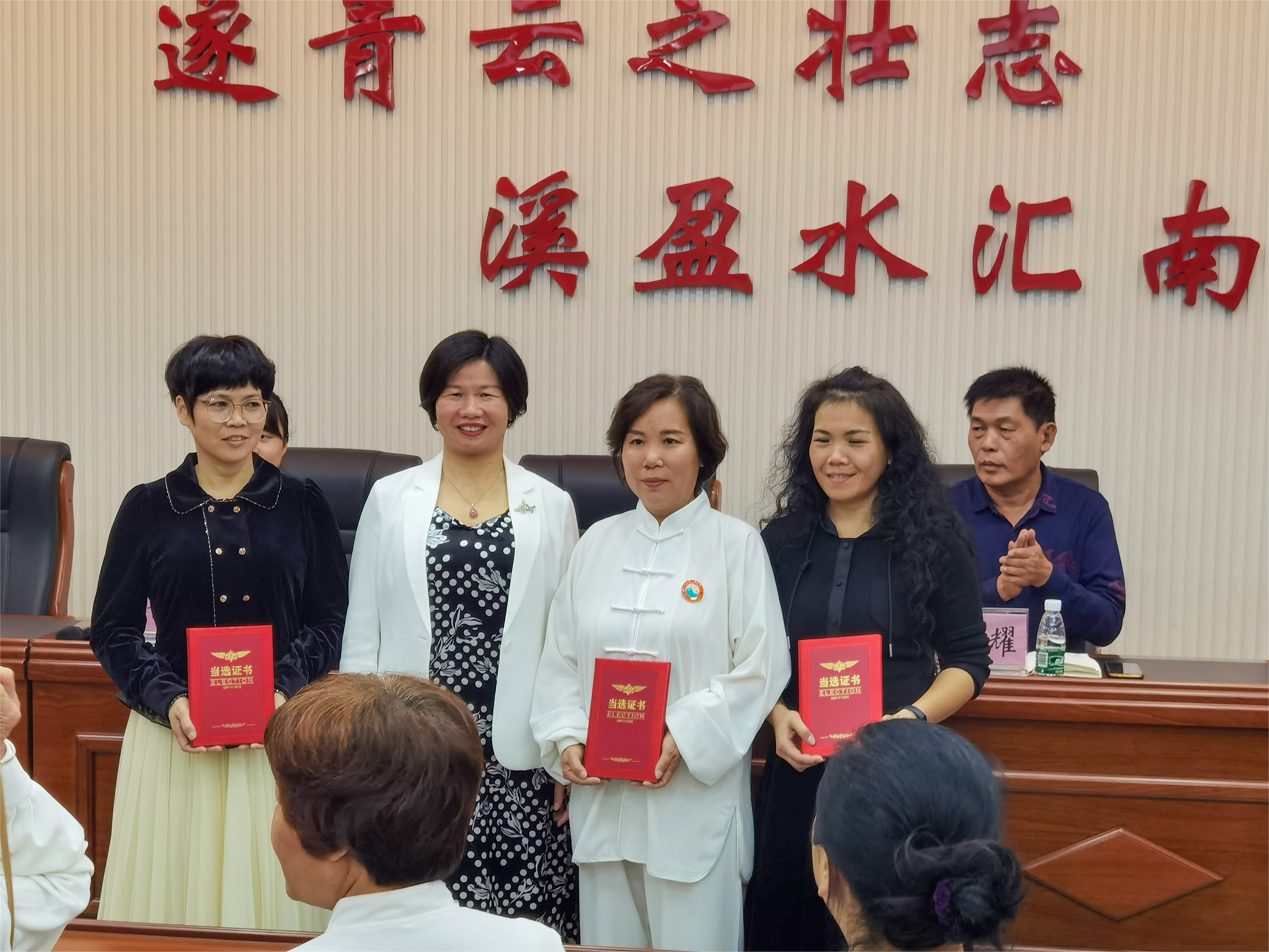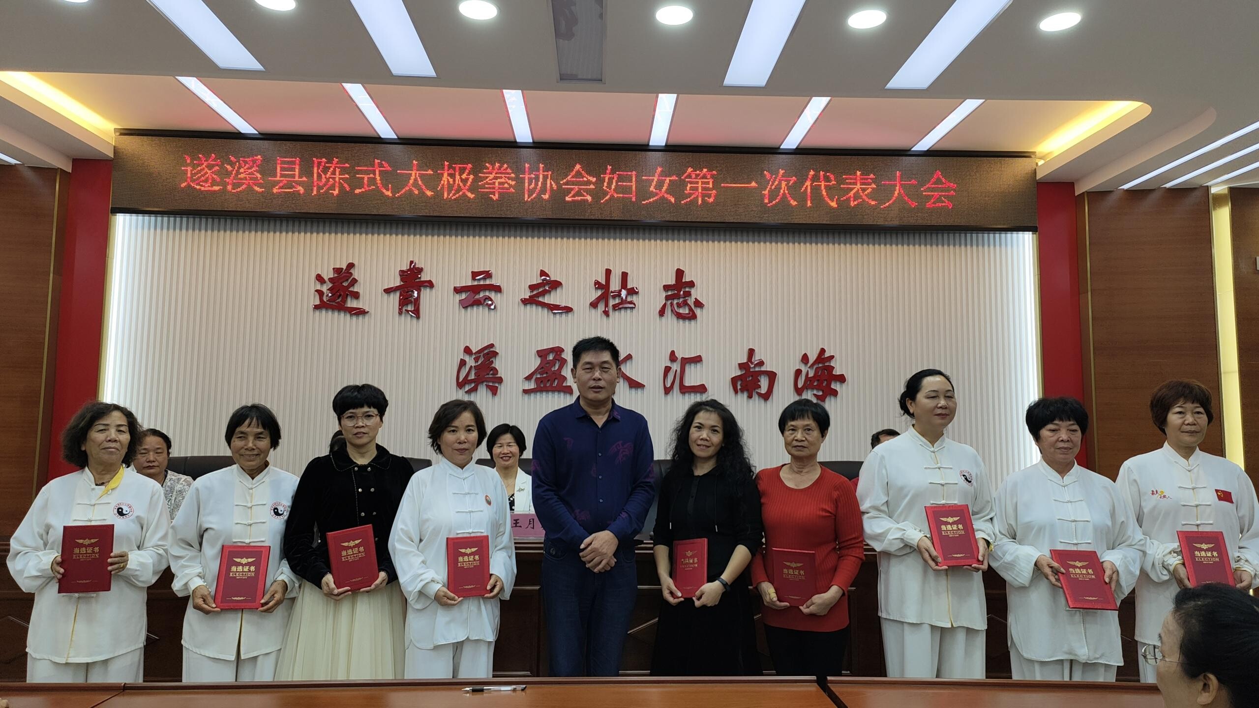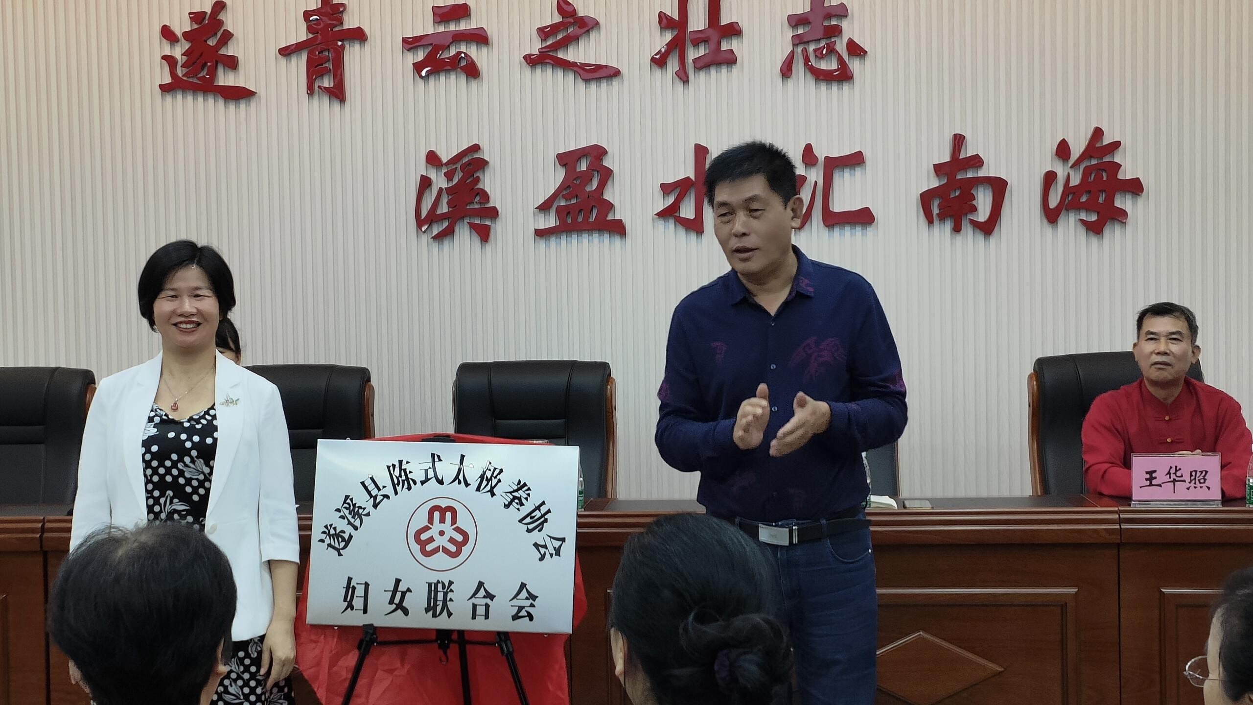 县妇联主席王月美与县文广旅体局副局长袁耀共同为遂溪县陈式太极拳协会妇联举行了揭牌仪式,并为新当选的主席、副主席及执委颁发当选证书。