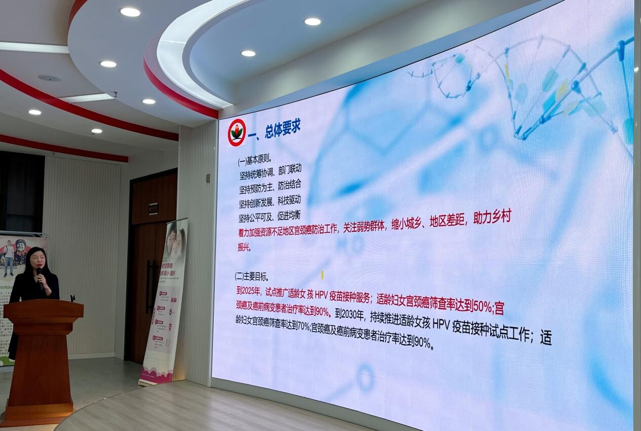 启动仪式后,湛江市妇幼保健院谭婉婷结合自身宣传经历,详细解读《广东省加速消除宫颈癌行动计划(2023-2030年)》,从政策角度倡导各职能单位要明确责任,女性朋友要树立“防”重于“治”的健康理念,普及宫颈癌防治知识,降低患病风险,加强宫颈癌筛查服务,促进早诊早治。