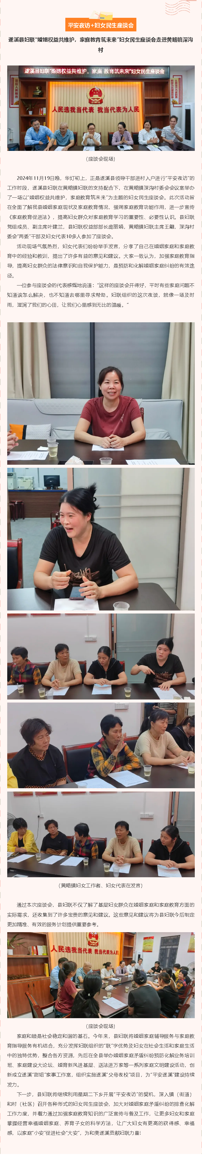 平安夜访+妇女民生座谈会 ——遂溪县妇联“婚姻权益共维护,家庭教育筑未来”妇女民生座谈会走进黄略镇深沟村