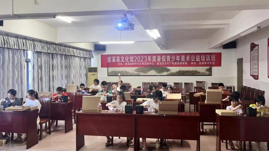 遂溪县文化馆为充分发挥文化馆的公益服务职能,积极推动群众文化的健康发展,完善公共文化服务体系建设,让群众享受在家门口的优质公共文化服务,提升群众文化综合素质,7月11日—8月28日,遂溪县文化馆开展了青少年暑假免费公益培训班,本期组织阵地培训有少儿美术、少儿书法、少儿舞蹈艺术课程。