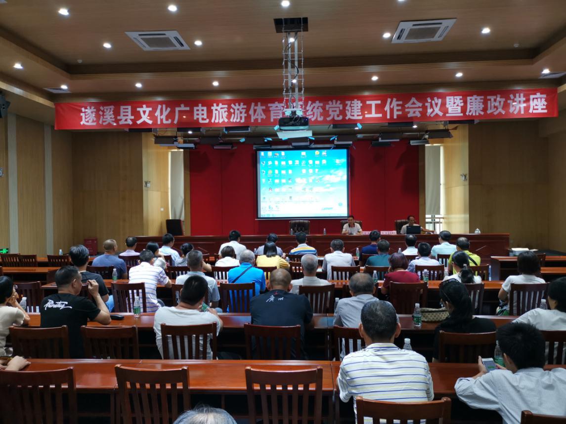 为进一步加强党风廉政建设和预防职务犯罪教育,筑牢党员干部拒腐防变的思想道德防线,促进廉洁自律。2019年6月12日下午,县文化广电旅游体育系统在县体育馆四楼会议室举行党建工作会议暨廉政讲座。县文化广电旅游体育局及其下属的博物馆、图书馆、电影公司、粤剧团等单位全体干部职工聆听了讲座。
