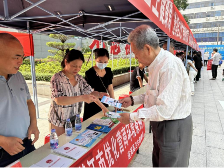 活动现场通过悬挂横幅、发放宣传资料等形式,向广大经营主体及群众宣传讲解《湛江市优化营商环境条例》等法律法规,并就经营主体及广大群众关心的营商环境问题进行宣传解读。