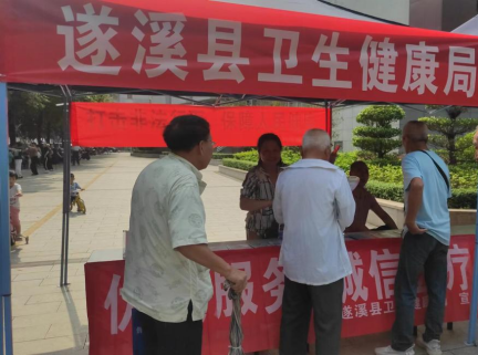 为进一步增强医疗卫生行业诚信意识,改善医疗卫生行业发展信用环境,营造“事事守信用、人人讲诚信”的良好社会氛围,为我县经济社会高质量发展营造良好的营商环境,助力卫生健康事业的高质量发展。2024年4月26日上午,遂溪县卫生健康局在县影剧院广场开展了“优质服务,诚信医疗”为主题的诚信宣传活动。