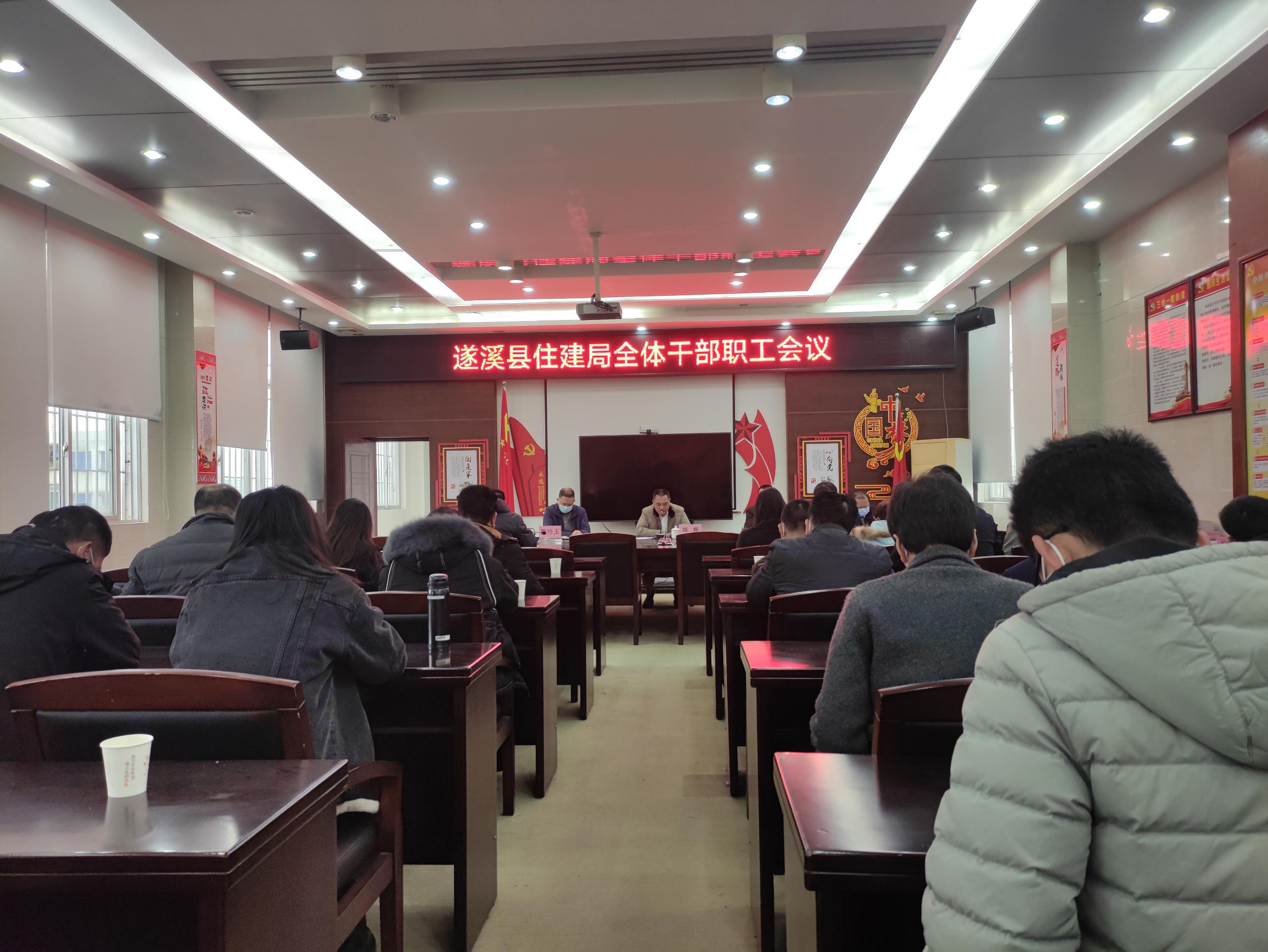 2023年1月19日,遂溪县住房和城乡建设局组织召开全体干部职工会议,总结2022年全年工作和安排2023年工作计划,会议由党组书记、局长郑辉同志作总结讲话和工作部署,党组成员、副局长陈光时同志主持会议,县住建局副科以上领导干部、各股室成员和下属单位负责人共60多人参加会议。