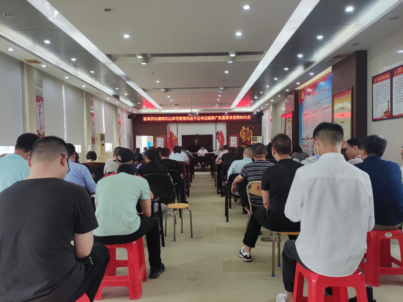 2023年4月28日,遂溪县住房和城乡建设局召开全体干部职工大会,传达学习习近平总书记视察广东重要讲话精神和省委常委会会议精神及省、市、县有关会议精神。局一级主任科员陈光时同志主持会议,局党组书记、局长郑辉同志出席并发表讲话,局机关全体干部职工及下属单位负责人共50多人参加了会议。