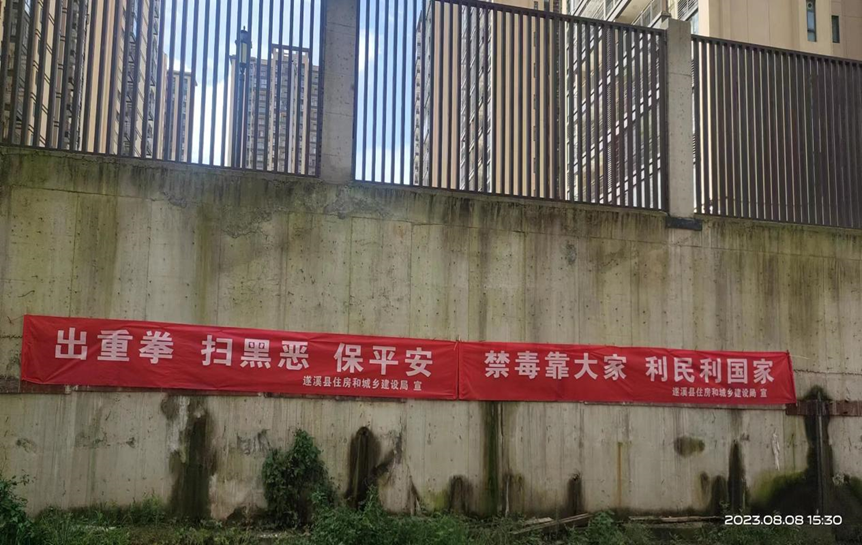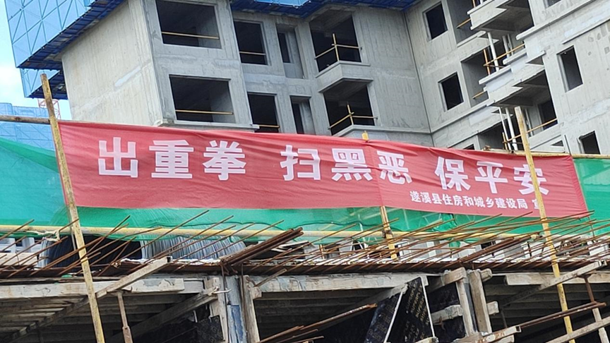 在建项目遂溪珺悦府项目悬挂扫黑宣传横幅