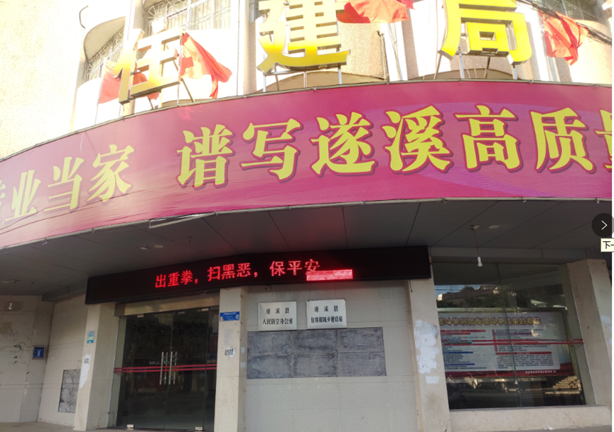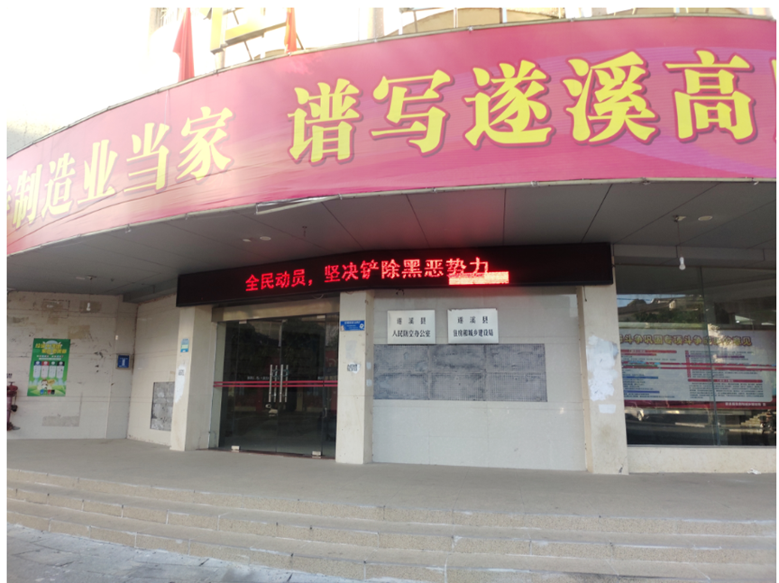 在住建局大门LED屏位置播放扫黑除恶标语