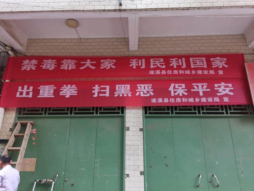 在遂城祥发商城悬挂扫黑宣传横幅