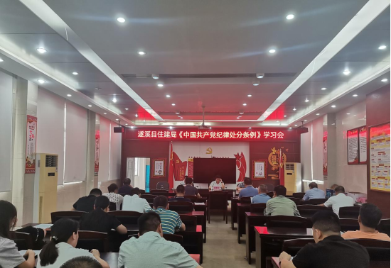 为深入开展党纪学习教育工作,引导全体党员干部深刻认识党纪学习教育的重要意义。5月6日上午,县住建局开展《中国共产党纪律处分条例》专题学习。党组成员、副局长庞靖波主持会议,局机关及直属单位全体在职党员、非党员公务员及下属事业单位负责人、入党积极分子参加会议。