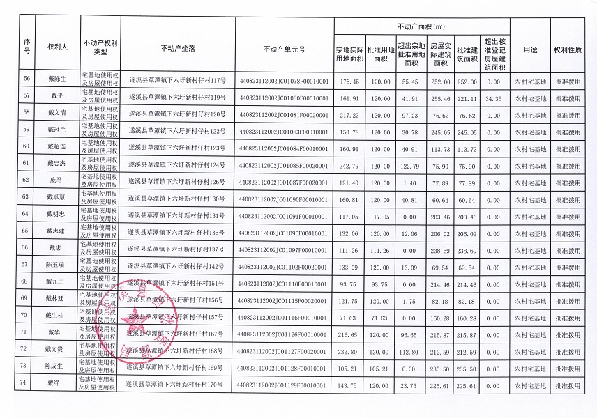 关于遂溪县草潭镇下六圩社区新村仔经济合作社“房地一体”农村不动产登记公告